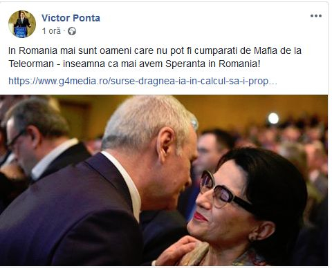 „In Romania mai sunt oameni care nu pot fi cumparati de Mafia de la Teleorman – inseamna ca mai avem Speranta in Romania!”, a scris Victor Ponta pe Facebook.
