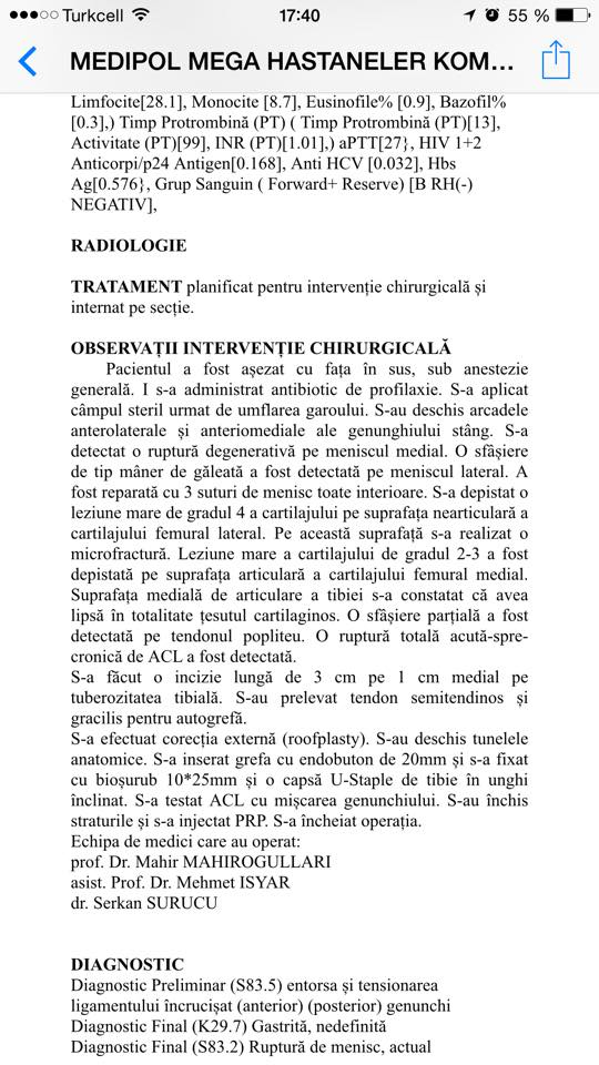 Altfel, premierul a suferit o „intervenție atroscopică de reconstrucție a ligamentului încrucișat anterior, genunchi” și o altă „intervenție atroscopică de rezolvare a meniscusului, genunchi”. Motivul internării este reprezentat de „durere genunchi stâng”.