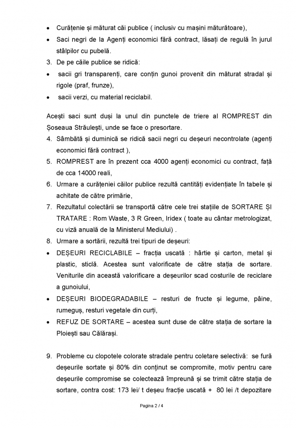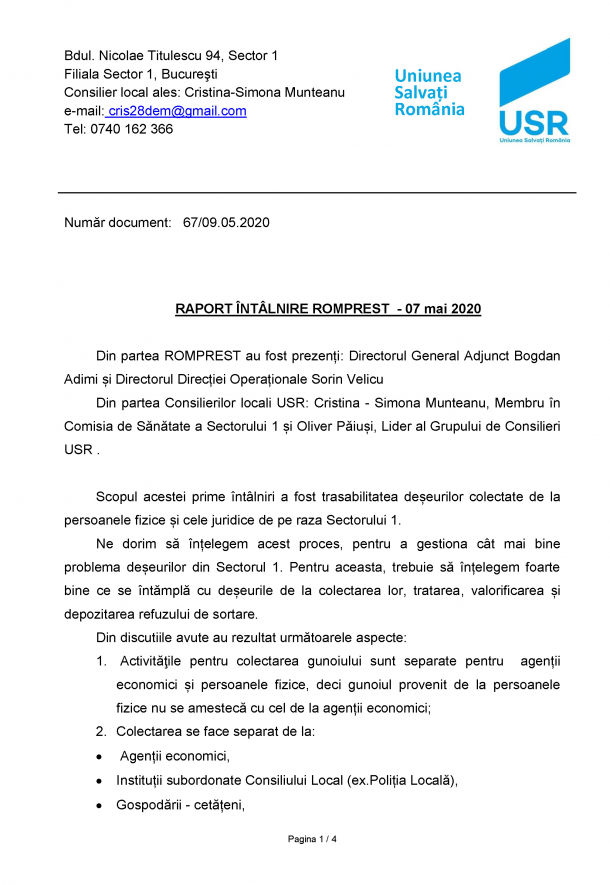 Duminică, Romprest a publicat un document, anume raportul întâlnirii din 7 mai dintre reprezentanții ei și consilieri locali USR de la acea vreme. În cadrul discuțiilor, a fost prezentat procesul de colectare a deșeurilor de pe raza Sectorului 1.