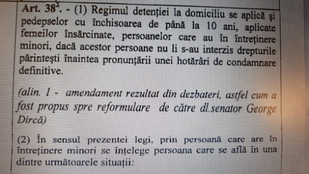 Una dintre ele prevede că femeile cu pedepse de până la 10 ani de închisoare pot executa pedeapsa în arest la domiciliu dacă sunt însărcinate sau au copii în întreținere, informează stiripesurse.ro.