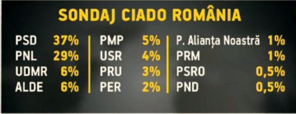 Sondaj CIADO privind alegerile parlamentare: Probleme privind pragul electoral pentru ALDE, PMP și partidul lui Nicușor Dan (FOTO, VIDEO)