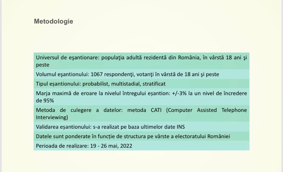 Sondajul a fost realizat pe un eșantion de 1067 de respondenți cu vârsta peste 18 ani.