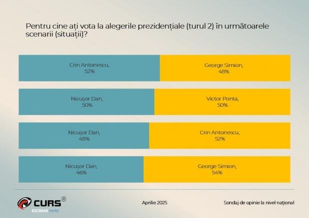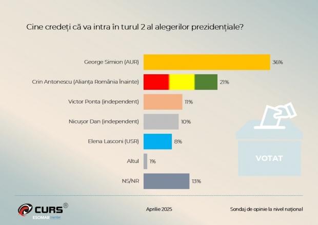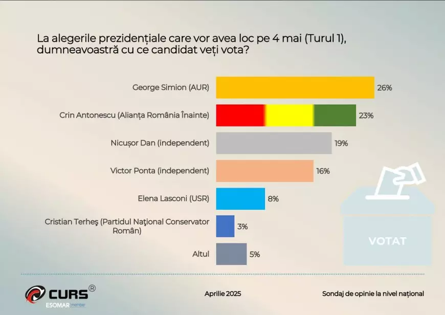 Centrul de Sociologie Urbană și Regională (CURS) a publicat un nou sondaj pentru alegerile prezidențiale care urmează să aibă loc în luna mai.