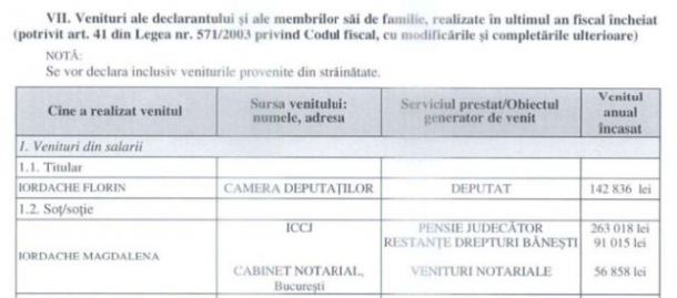 Aceasta și-a rotunjit veniturile din restanțe drepturi bănești, cu 91.015 lei, și din veniturile notariale, căci activează la un cabinet din Capitală, cu încă 56.858 lei.