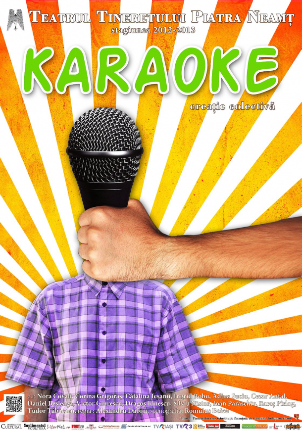 Teatrul Tineretului din Piatra Neamţ anunţă avanpremiera spectacolului KARAOKE, creaţie colectivă şi regie semnată de Alexandru Dabija. Spectacolul are loc, sâmbătă, 1 septembrie, ora 19:00.