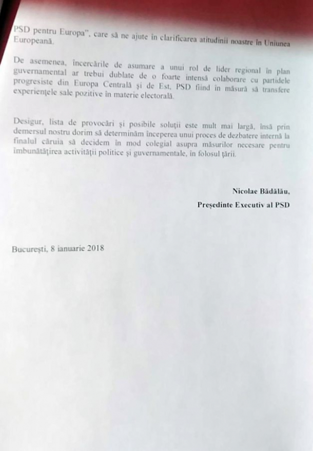 „Toate aceste erori slăbesc încrederea cetăţenilor în partidul nostru, iar cauza principală este tocmai şubrezirea democraţiei interne. Credibilitatea şi eficienţa guvernării le putem câştiga doar prin renaşterea democraţiei interne, prin dialog onest, transparenţă şi responsabilitate”, se arată în scrisoarea lui Bădălău, potrivit Adevărul.