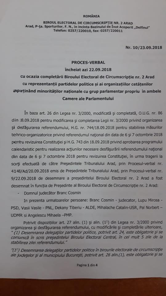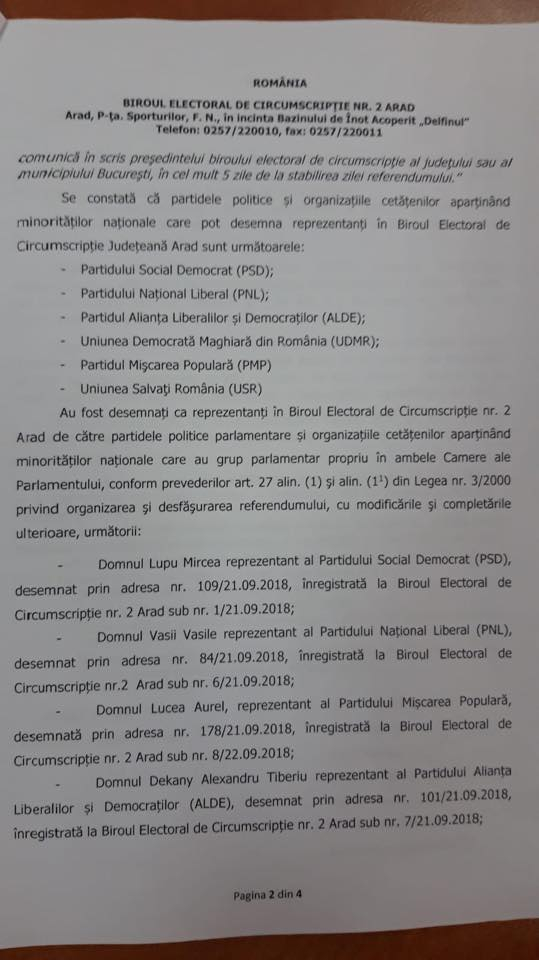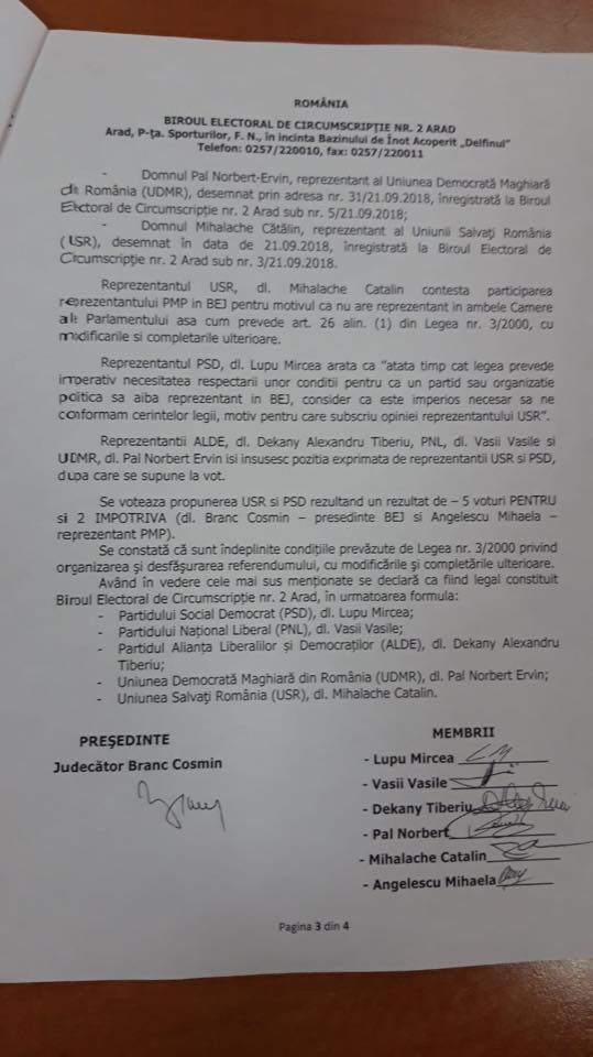 Preşedintele PMP, Eugen Tomac, a prezentat documente care arată cum USR s-a aliat cu PSD şi au cerut excluderea PMP din Biroul Electoral Județean Arad, constituit cu ocazia votului pentru referendumul pentru revizuirea Constituției.