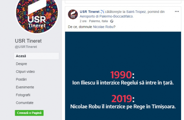 2019: Nicolae Robu îl interzice pe Rege în Timișoara”, au scris cei de la USR Tineret.