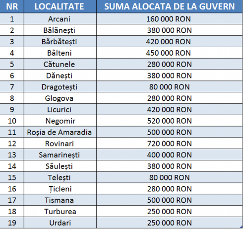 Acesta a publicat și un tabel cu localitățile care au primit bani de la Guvern, din Fondul de Rezervă.