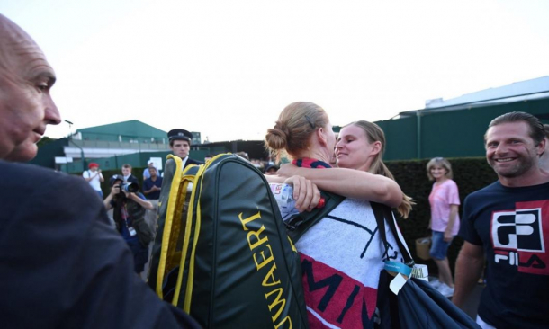 IMAGINEA ZILEI de la Wimbledon. Alison Van Uytvanck şi-a îmbrăţişat iubita după victoria în faţa lui Muguruza: A fost bine că am spus că sunt LESBIANĂ! (FOTO)