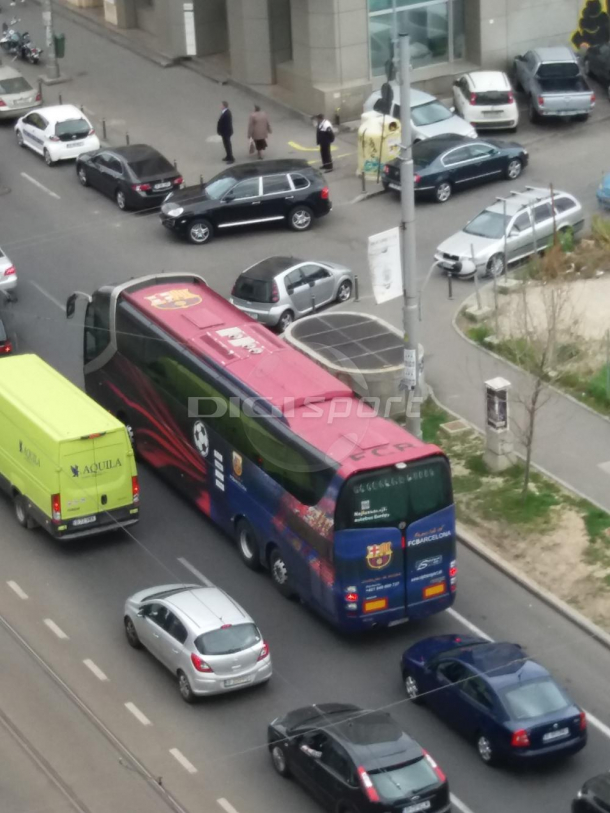 Imaginille au fost postate de jurnaliștii de la DigiSport după ce au primit fotografiile de la un cititor, iar motivul apariției autocarului catalan pe străzile bucureștene este o enigmă.