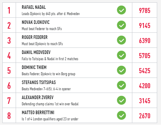 Astfe, primii opt clasaţi în turneu ATP sunt (cel putin provizoriu):