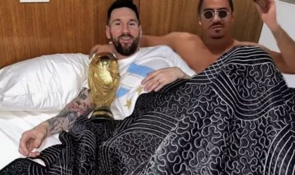 Se pare că Salt Bae a ajuns fără probleme lângă jucătorii naționalei Argentinei și a făcut poze cu ei, dar și cu trofeul.