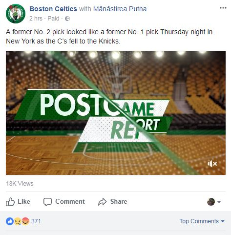 Asta după ce cea mai titrată echipă de baschet din istoria NBA, Boston Celtics, şi-a dat check in pe Facebook la Mănăstirea Putna.
