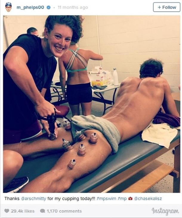 USA Today a venit cu răspunsul: e o metodă de recuperare pe care înotătorii și gimnaștii o folosesc intens. Mai precis, tratament cu ventuze. Tehnica are rolul de a relaxa mușchii și tendoanele prin cupe care aspiră pielea, având rezultate mai bune decât masajul.