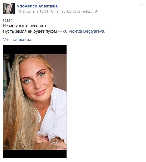 Anunţul morţii sale a fost făcut de prietena sa de la Chişinău, Anastasia Vdovenco, care a publicat un mesaj pe Facebook.