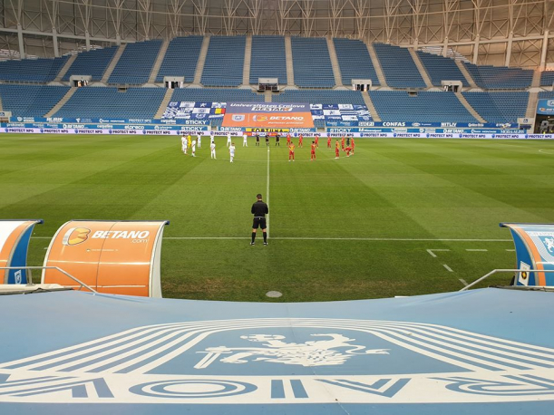 CS U Craiova și FCSB, moment de reculegere la centrul terenului, pe Stadionul „Ion Oblemenco” / Foto: Facebook.com/UCVOficial