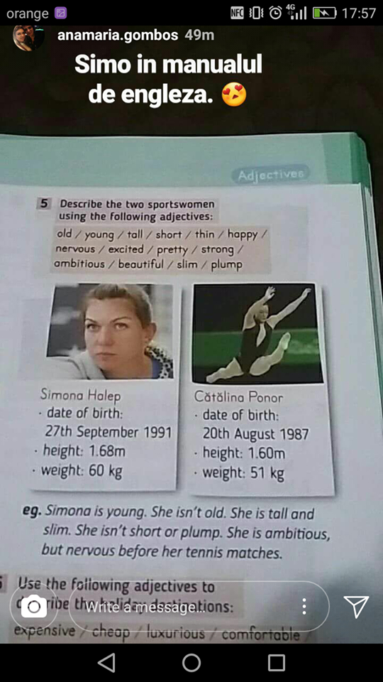 Mai nou, sportiva noastră a reușit, la propriu, să ajungă într-un manual de engleză.