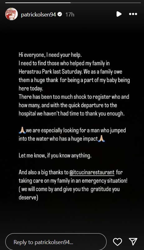 Patrick Olsen, fotbalist în vârstă de 30 de ani, îl caută acum pe bărbatul care i-a salvat fiica.