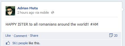 ”HAPPY ISTER to all romanians around the world!”, a postat Adi Mutu pe Facebook.