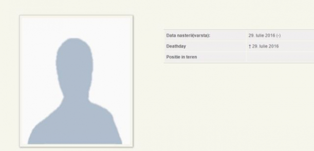 La toți ceilalți apare poziția în teren și numărul de pe tricou. Însă la cei 4, care nu au nici poză spre deosebire de colegii lor, la caracteristici, apar data nașterii și cea a decesului, date care coincid.