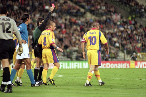 5. Retragerea de la naţională. Ultimul meci jucat de Hagi pentru naţionala României a fost de tristă amintire. „Regele” a fost eliminat meciul cu Italia, iar tricolorii au fost eliminaţi în sferturile de finală de la Euro 2000.
