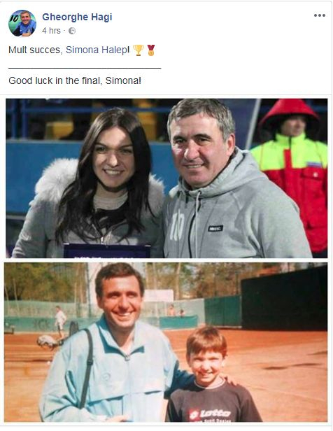 În plus, fostul mare fotbalist a postat şi pe Facebook un mesaj pentru Halep altături de două poze cu aceasta.