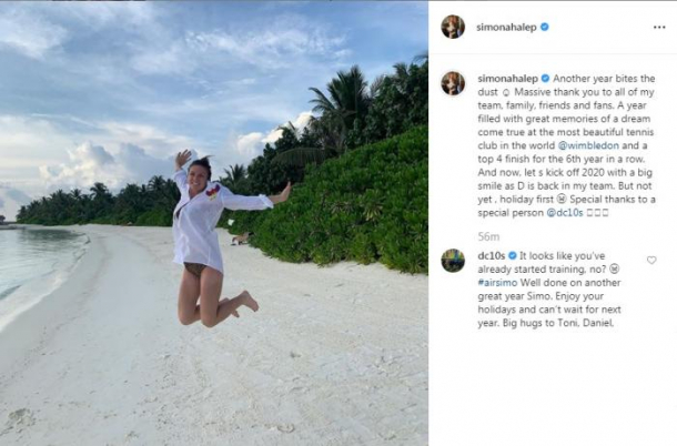 Iar acum să începem anul 2020 cu un mare zâmbet, fiindcă D (n.r. Darren Cahill) este din nou în echipa mea. Dar nu chiar acum, mai întâi vacanța! Mulțumiri speciale unei persoane speciale, Darren Cahill”, a fost mesajul Simonei pe Instagram.