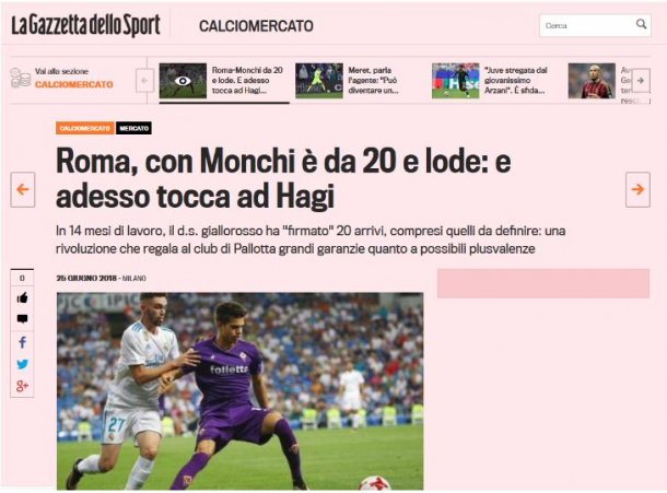 Conform jurnaliştilor italieni, Ianis Hagi este văzut drept o variantă de rezervă pentru Javier Pastore pe care AS Roma l-a achiziţionat în vară de la PSG pentru 20 de milioane de euro.
