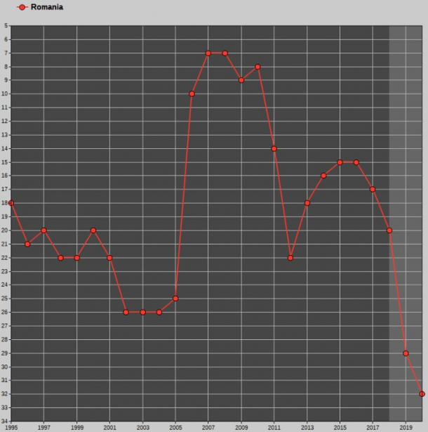 La începutul anului competițional 2019/2020, România va pierde cel mai bun punctaj, din 2014/2015, adică 5.125 și va porni cursa de pe locul 32, sub Liechtenstein!