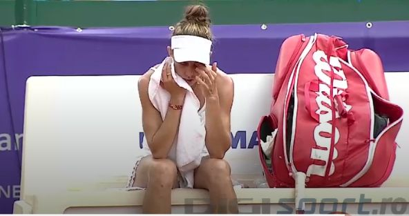 Într-un gest de nervozitate, Buzărnescu a aruncat racheta în sus şi, când a încercat să o prindă, s-a lovit la ochi. Ea a avut nevoie de intervenția medicului, dar nu a fost ceva grav, așa că și-a putut continua meciul.