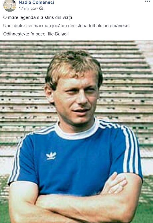 Odihnește-te în pace, Ilie Balaci!”, a scris Nadia Comăneci pe contul personal de Facebook.