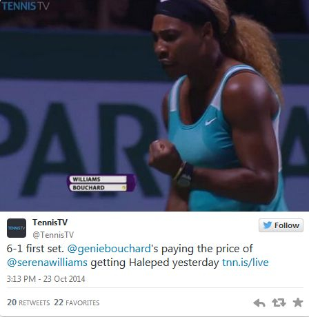 Potrivit hotnews.ro, canalul de televiziune online tennis.tv spune că Serena a fost „halepată” de sportiva româncă („Serena Williams getting Haleped yesterday”).