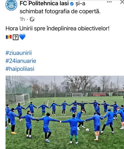 Clubul de fotbal din Iași a postat astăzi, pe Facebook, steagul Andorrei în loc de cel al României într-o postare cu trimitere la Ziua Unirii.