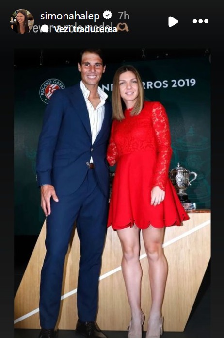 Printre personalitățile care au reacționat s-a numărat și Simona Halep. Românca a postat un mesaj pe Instagram, alături de o fotografie în care apare alături de Nadal. „Pentru totdeauna un model de urmat”, a precizat ea.