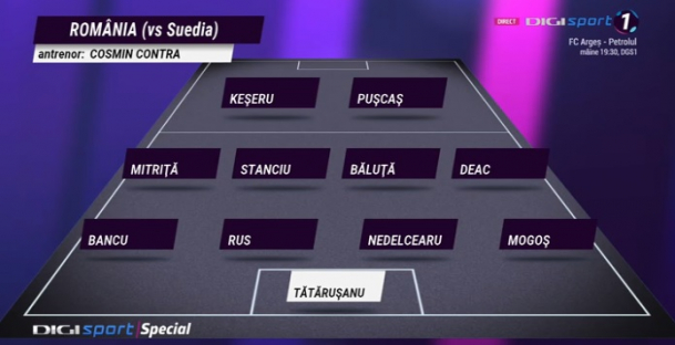 ROMANIA – SUEDIA LIVE VIDEO online video stream Pro TV / Youtube / protvplus.ro. Iată aşezarea în teren aleasă de Cosmin Contra: