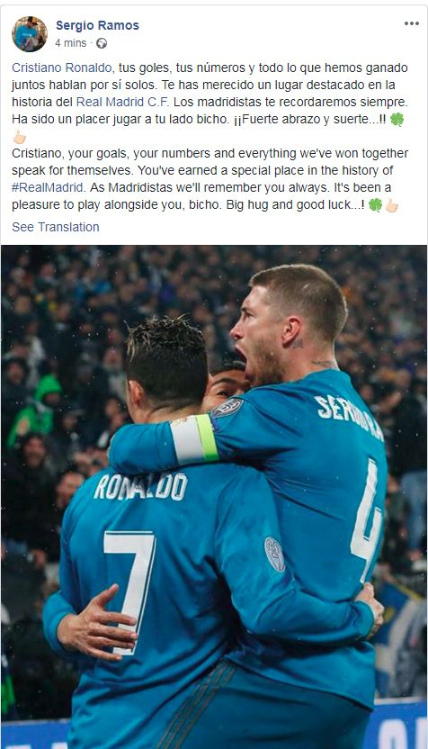 Mutarea a fost confirmată şi de căpitanul Realului, Sergio Ramos, care a postat un mesaj în care îşi la revedere de la starul portughez.