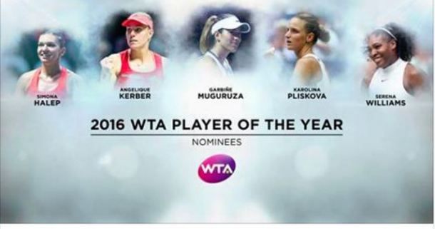 Simona Halep, locul patru mondial, este nominalizată pentru titlul de cea mai bună jucătoare a anului 2016, alături de Angelique Kerber, Serena Williams, Garbine Muguruza şi Karolina Pliskova, a anunţat WTA.