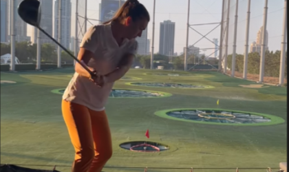 Mai mult, pentru distracție și amuzament, românca a schimbat sportul și pare că se descurcă de minune și la golf.