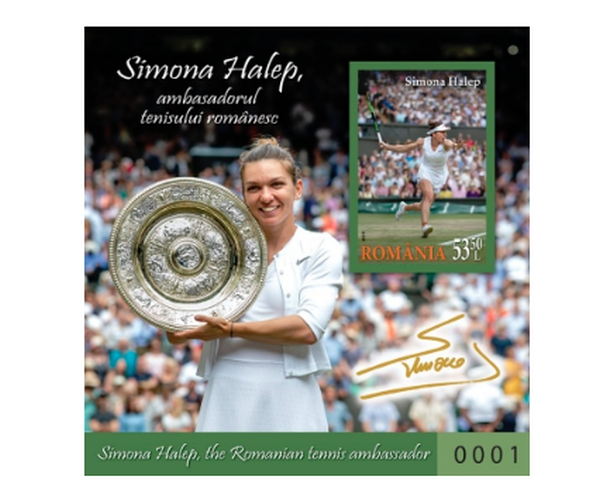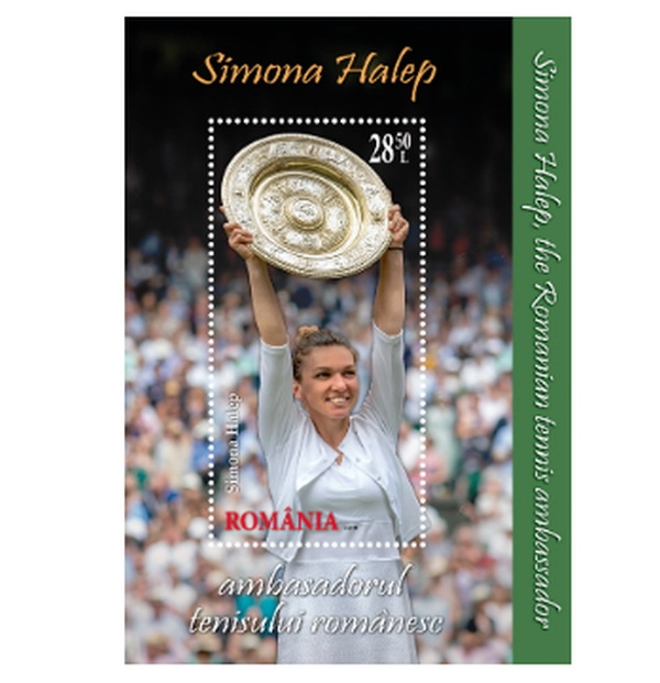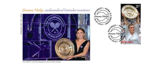 „Ministerul Comunicaţiilor şi Societăţii Informaţionale, prin Romfilatelia – companie aflată în portofoliul său, introduce în circulaţie, vineri, 26 iulie 2019, emisiunea de mărci poştale’ Simona Halep, Ambasadorul Tenisului Românesc’, pentru a onora seria performanţelor unei mari jucătoare de tenis şi, în special, a cuceririi titlului de la Wimbledon din 13 iulie 2019.