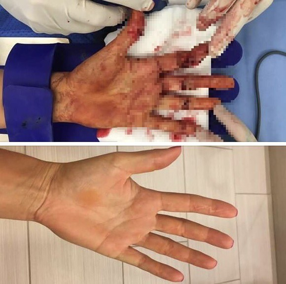 Din imagine se observă cu Kvitova este tăiată extrem de grav la toate degetele mâinii stângi, unele dintre ele abia ținându-se în tendoane.