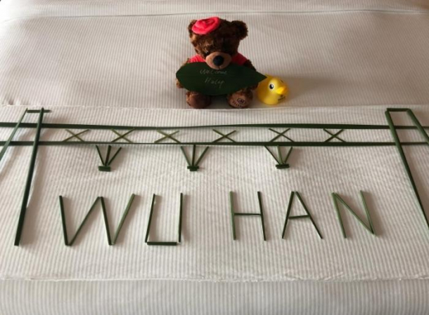 Numărul unu mondial a găsit un ursuleţ de pluş pe care scrie „Welcome Halep” (Bine ai venit, Halep) şi o răţuşcă.
