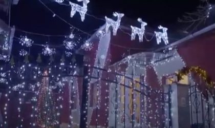 Un locuitor din Alba şi-a împodobit casa, copacii şi gardul care îi împrejmuieşte proprietatea cu mii de luminiţe, în preajma sărbătorilor de iarnă.